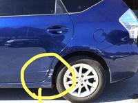 キズ・へこみ直し トヨタ プリウスα 左後ろドア・タイヤの上・サイドステ…