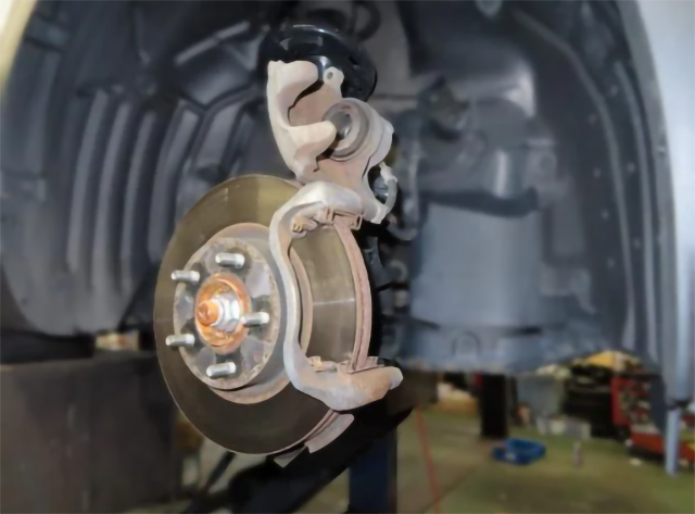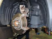 ブレーキローターの腐食やパッド固着を確認し、ロアアームやボールジョイント、タイロッドエンドブーツなどを交換。固着箇所は錆を削って再加工しました。