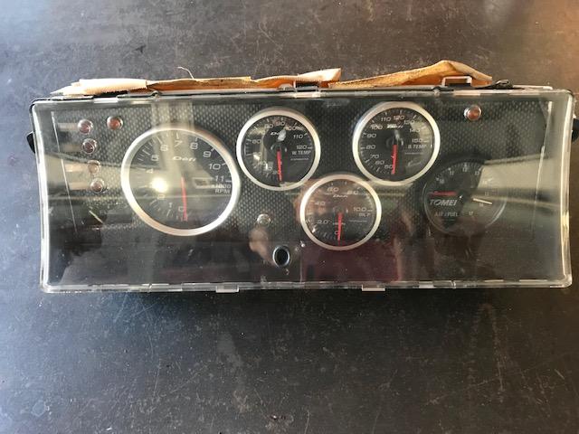 社外ピロロアアーム取り付けに伴い構造変更を実施。既存のメーターパネルが配線不良やガムテープ補修で酷い状態だったため、2mmアルミ板で新規製作し、純正フィルム基板を活かした安全な配線に変更しました。