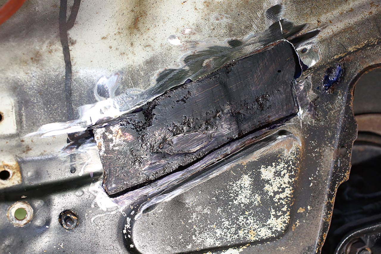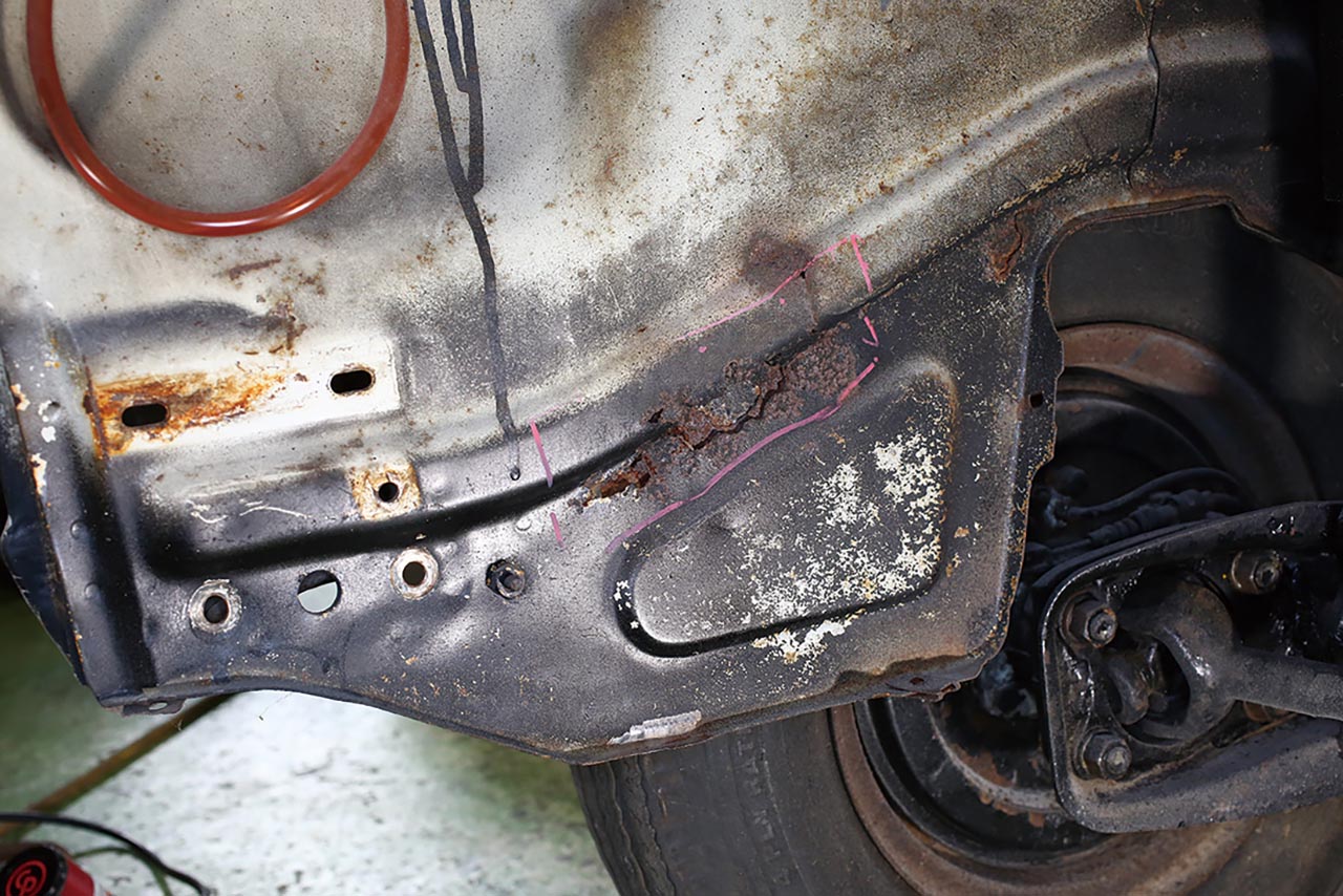 とりあえず見えている部分の錆は落としたが、このままパネルを溶接して蓋をしてしまうと、再び錆が発生してしまう。