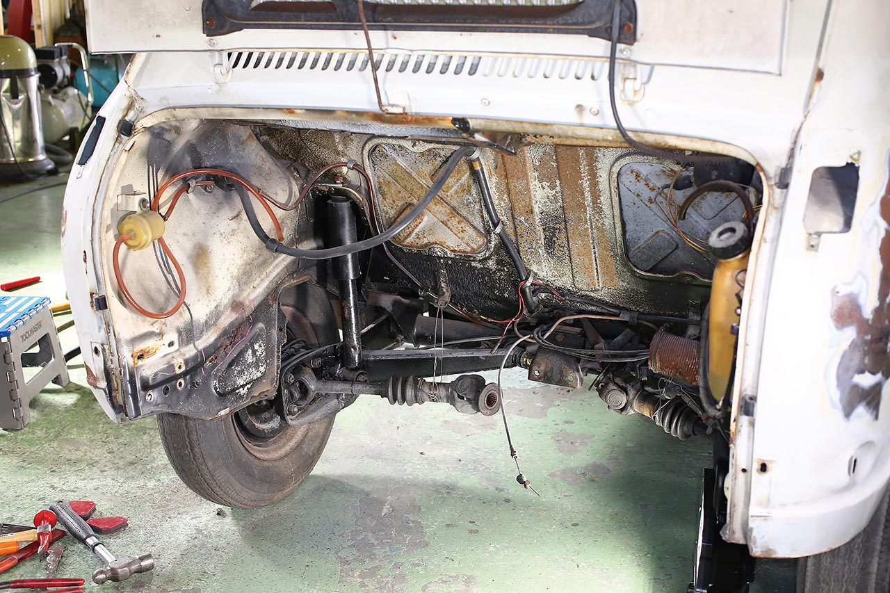 腐ったリヤフェンダーを切り貼り修理 走れ SUBARU R-2