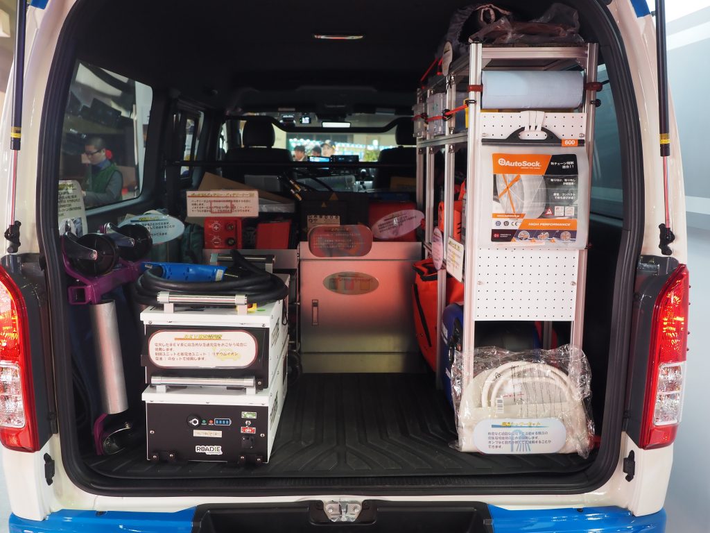 バッテリーやエアジャッキから簡易トイレや毛布までさまざまな資機材を搭載
