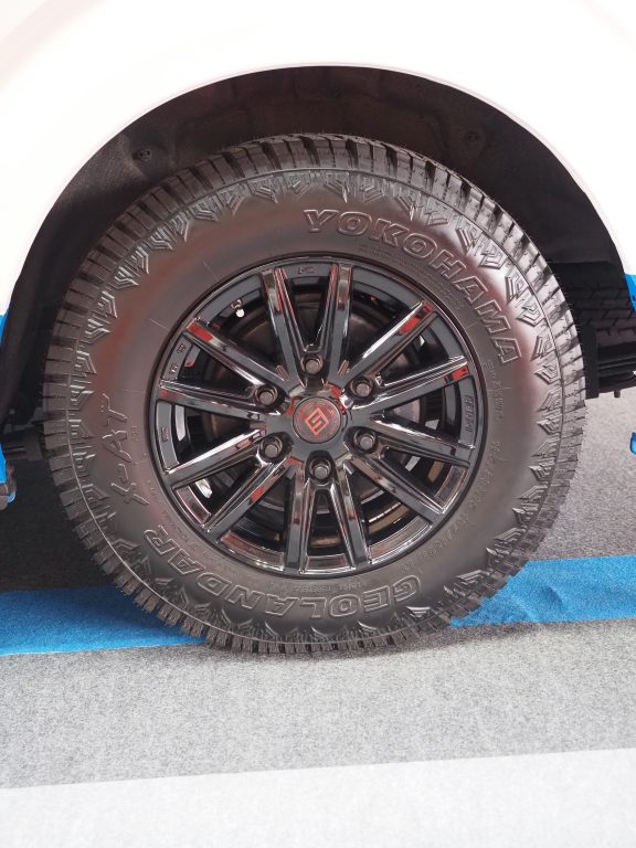 被災地の悪路にも対応できるよう専用車両はタイヤも特別な仕様となっている