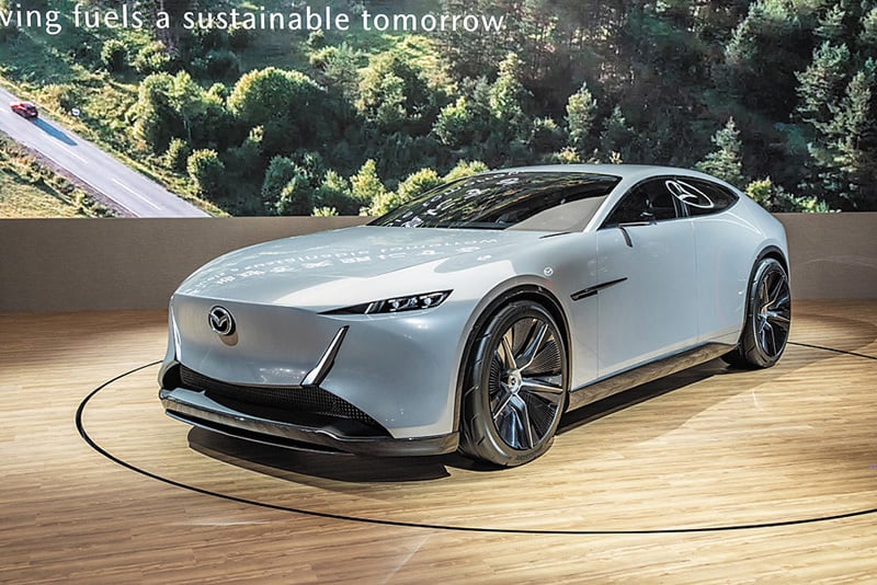 MAZDA VISION X-COUPEは、魂動(こどう)デザインを進化させたクロスオーバークーペ。愛らしいフォルムのMAZDA VISION X-COMPACTは、デジタル化した人の感覚と共感型AIを融合。クルマとの絆の深化を目指す。