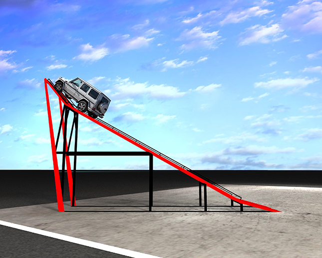バランス・モーグルで車体が大きく傾いても快適に安定して走ることができる高いねじれ剛性を体感し、クロス・ヒルで段差が多く接地しないタイヤがあった場合でもタイヤの空転や横滑りを防ぐと同時に、スムーズな車体の重心移動でストレスレスな悪路走行を実感。マウンテン・クライムでは、ジェットコースターさながらの急勾配を力強く登坂することで、メルセデス・ベンツが誇る4輪駆動システム「4マチック」の高い制動力と安定した操縦性、走破性を身をもって知ることができる。