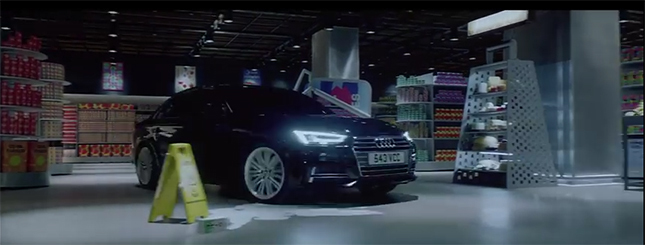 深夜のショッピングモールで繰り広げられる、アウディ「A4クワトロ」の小さな冒険