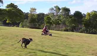 全速力で走る犬と張り合う速度なので、35km/hぐらいでしょうか?