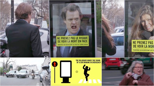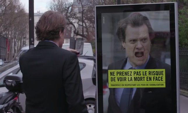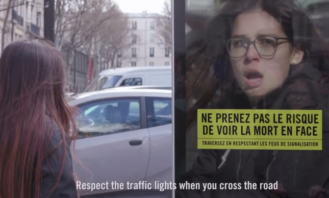 フランスのパリでは、歩行者の横断マナー向上のためのキャンペーンが実施されました。赤信号の横断歩道を渡った歩行者に、事故の恐怖を疑似体験してもらおう、というものです。