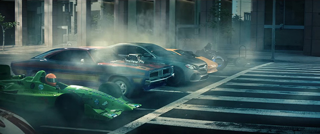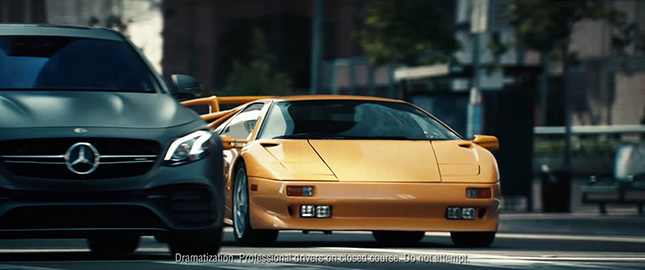 しかし次の瞬間、写し出されるのは高速でクルージングをするメルセデスAMG E63 Sの姿です。それは、鋭い加速力でライバルたちと互角の戦いを可能としながらも、メルセデスならではの快適でラグジュアリーな移動空間であることをアピールしているようです。