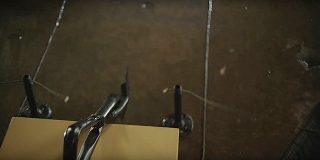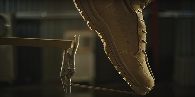 小気味よく連動して動くカラクリ装置は眺めていて爽快です。でも、なんか普通ではない気がします……。そんなことを考えている間にもカラクリ装置はどんどん展開していきます。これは軍隊で使用されるようなブーツ……。