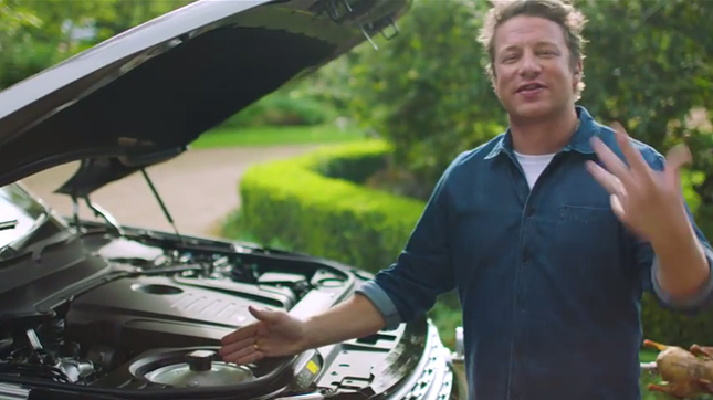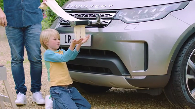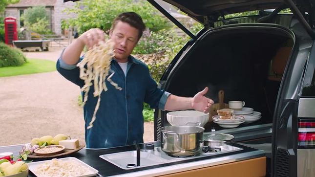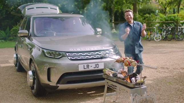 ベースになっているのは、ランドローバー ディスカバリー。外観はほとんどノーマルに近い印象です。運転するジェイミー・オリバーさんは超絶ゴキゲンですが、いったいどんな仕かけが備わっているのでしょうか?