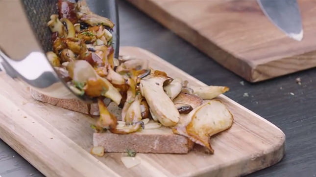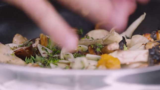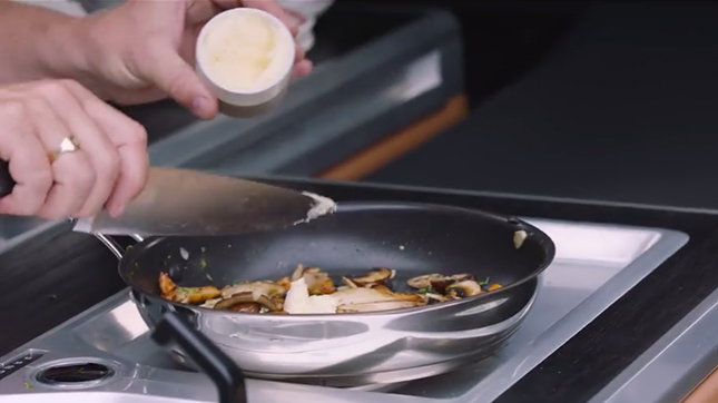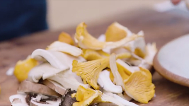 キノコのソテーにはバターを加えます。