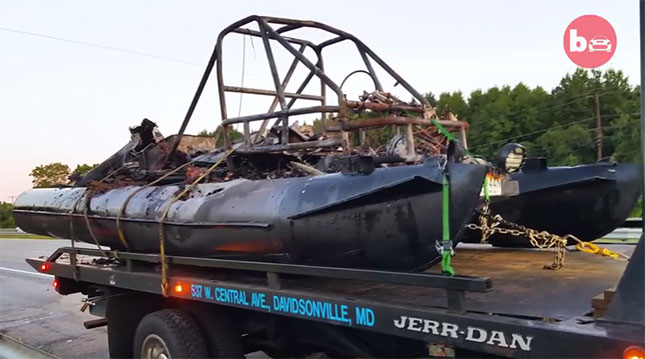 空は飛べなくても、走ったり、航行したり、楽しいスピーディーコプター生活を満喫している……はずだったジェフさん。作業にかけた3000時間も、費用の1万ドル(約110万円)も、わずか5分で燃え尽きてしまいました。
