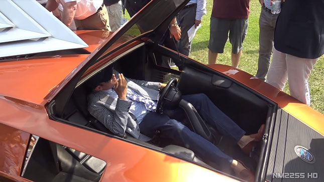 そして、見てください。この地を這うが如くに低い車体を。デザインはイタリアの名門「ベルトーネ」が担当したそうです。衝突安全性などという質問は控えましょう。コンセプトカーなのですから。