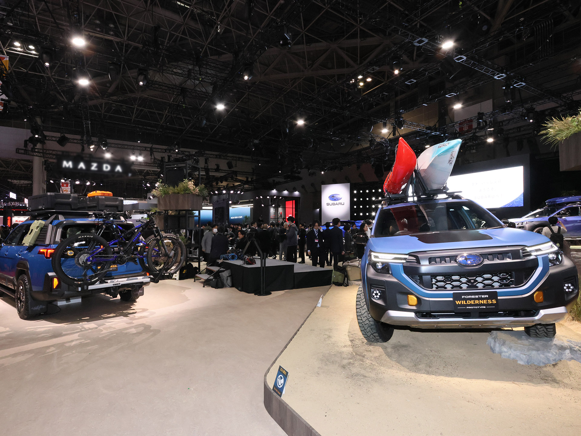国産メーカーではスズキ、スバル、ホンダ、マツダの4社が、輸入車メーカーではBYD、ヒョンデ、メルセデス・ベンツの3社が出展。いすゞ、日野、三菱ふそうなどの商用車部門や、カワサキ、スズキ、ホンダ、ヤマハの二輪車部門もこちらです。