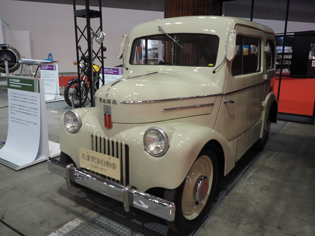 戦後から1950年代初頭の代表的なクルマと言えば「たま 電気自動車」です。第二次世界大戦後の石油不足の中、水力発電の余剰電力に着目し、飛行機技術者たちが開発した日本初の量産電気自動車で、都市部でタクシー用に使われたり、物流分野でも活躍。戦後の混乱期、復興を支えました。