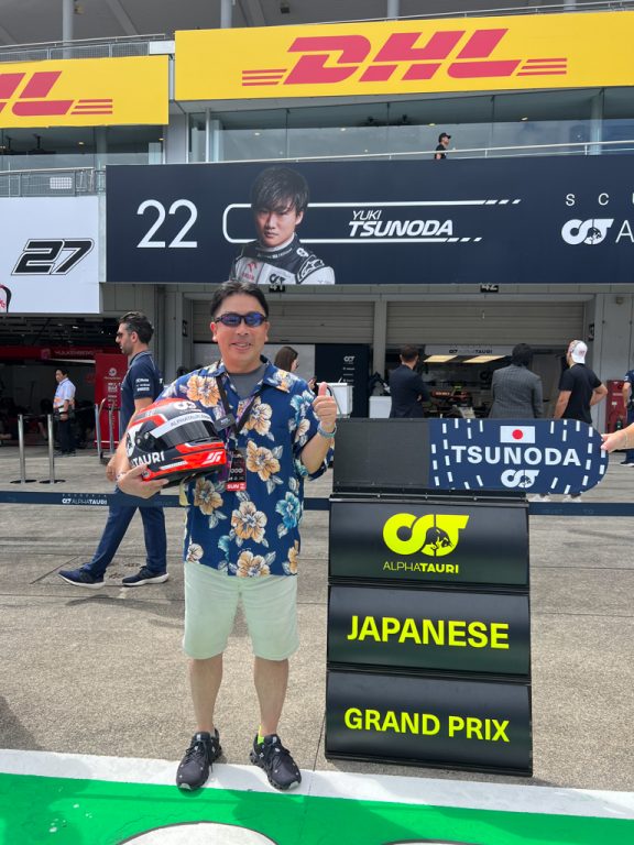 こういったサーキットタクシーの経験はあるし、自分でもサーキットを走るので、とんでもなく新鮮な体験というほどではないのだが、数時間後にF1の決勝が始まるコースを走るのは気分が違う。タイトルスポンサーのレノボを始め、普段とはまったく違う装いになっているうえに、10万人を超える大観衆のなかを突っ走っていくからだ。こちらにカメラを向けている人なんかもいたりして、テンションがあがる。自分がたまに出るレースは観客席にまばらに人がいるだけだが、こういったなかだとモチベーションも爆上がりしそうだ。