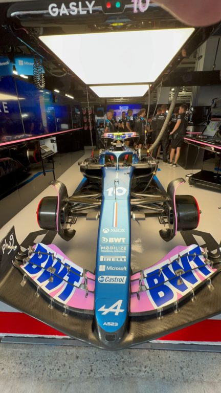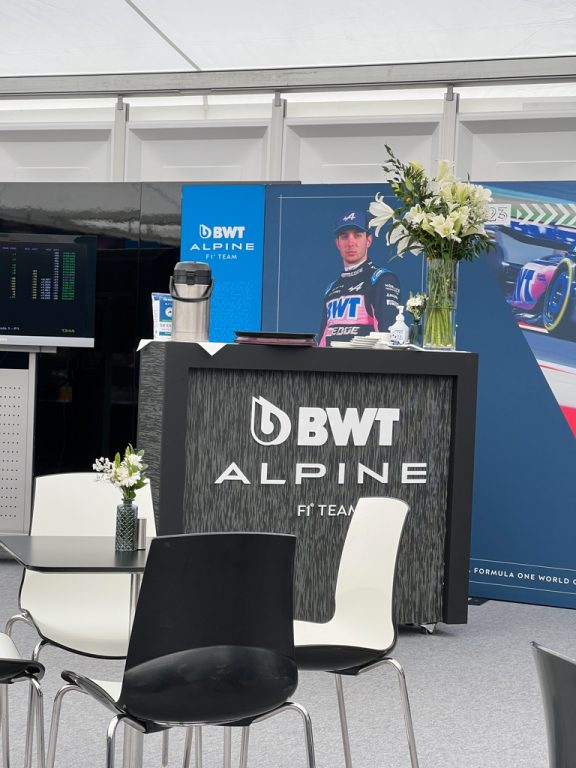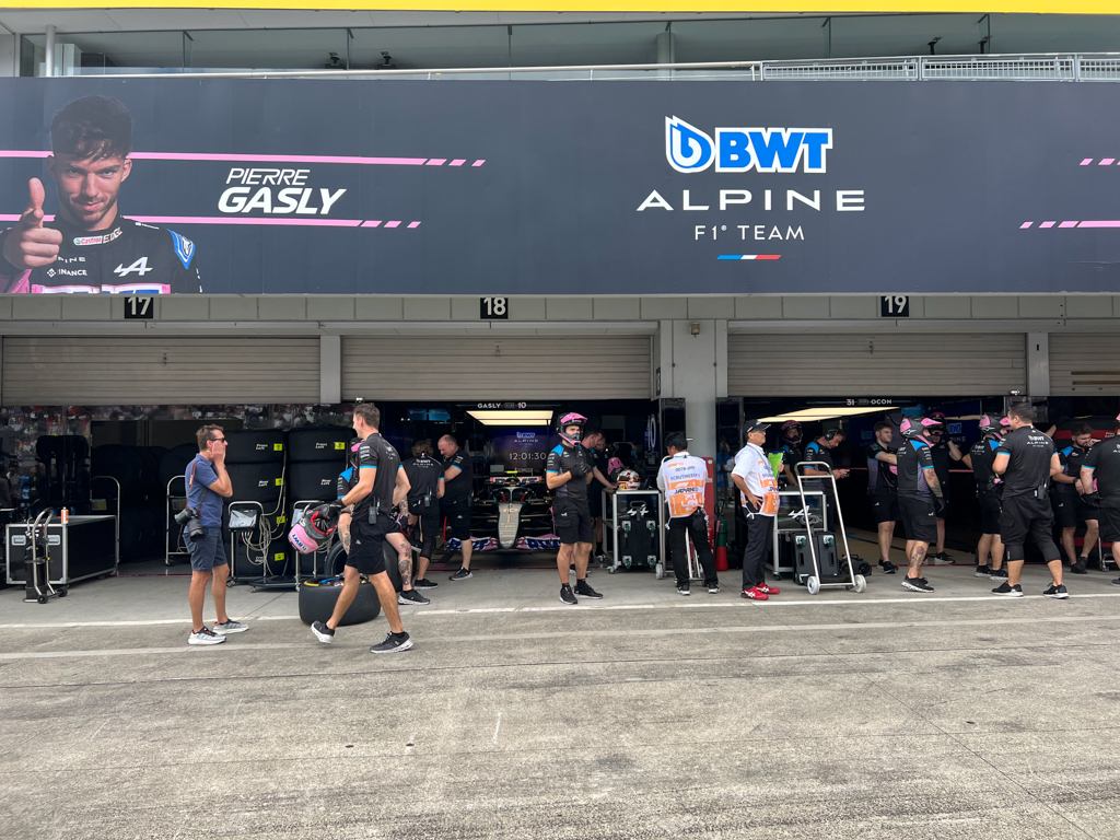 今回は日曜日の決勝だけで基本はグランドスタンドでの観戦だったが、午前中はBWTアルピーヌF1チームの招待でパドックに足を踏み入れることができた。決勝は14時からで、自分が到着した午前9時半頃のパドックはまだ和やかな雰囲気。ドライバーを始め、中継でよく目にするチーム代表やエンジニア、TVレポーターなどがホスピタリティテントで談笑している。昼過ぎからはドライバーのパレードなど決勝に向けてのプログラムがスタートするが、午前中はパドッククラブのお客さん向けのコンテンツがあり、今回はその一部も体験させてもらった。