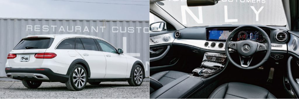 極めて高い実用性と高級車としての快適性をあわせ持つEクラス ステーションワゴン。その高い走行性能をベースにしながら、最低地上高を高めることでSUVのような高い走破性を持たせたのがオールテレイン。中古車の物件数が少ないこと、価格が高いことを除けば、まさに万能なクルマです。