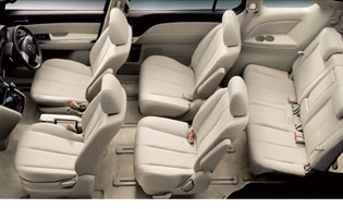 定員はセカンドシートがキャプテンタイプの7名とベンチタイプの8名がある。7名定員のキャプテンシートは、前後のみならず左右のスライドも可能な珍しいタイプ。またスーパーリラックスシート装着車は、アームレストやレッグレストも付く。