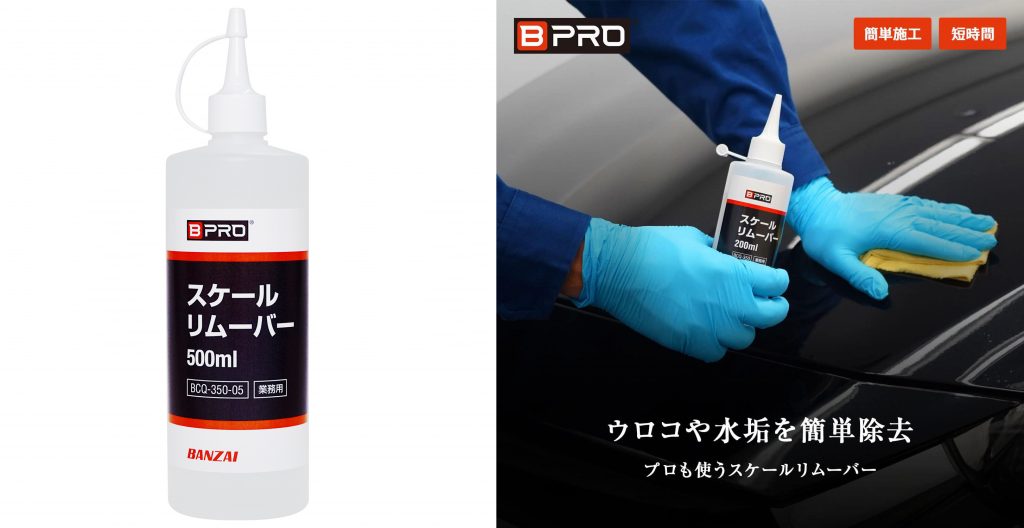 カーディーラーや整備⼯場などのプロユース向けに開発されたBPROスケールリムーバーは、これまで200mlサイズを展開。今回のリニューアルにより、500mlサイズがラインナップに加えられた。