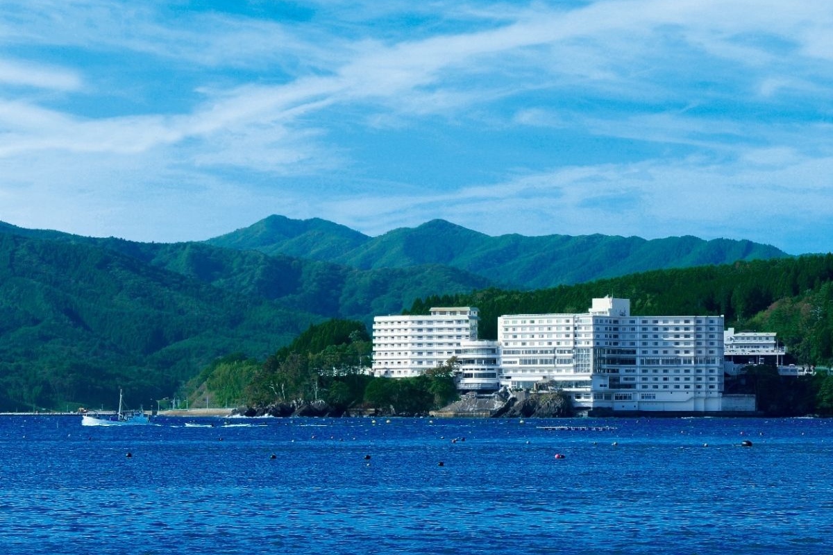 宮城・志津川湾に浮かぶ海の館、南三陸ホテル観洋。緑の島々と太平洋を望む絶好のロケーションが魅力で、穏やかな海が宿泊客の心を癒やします。