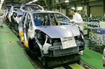 フレームやボディに使用される鋼板も軽く、強いものへと進化をしている。生産ラインのオートメーション化も著しい。