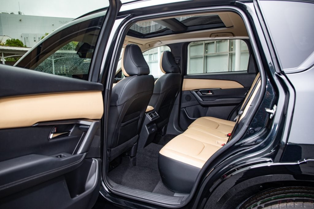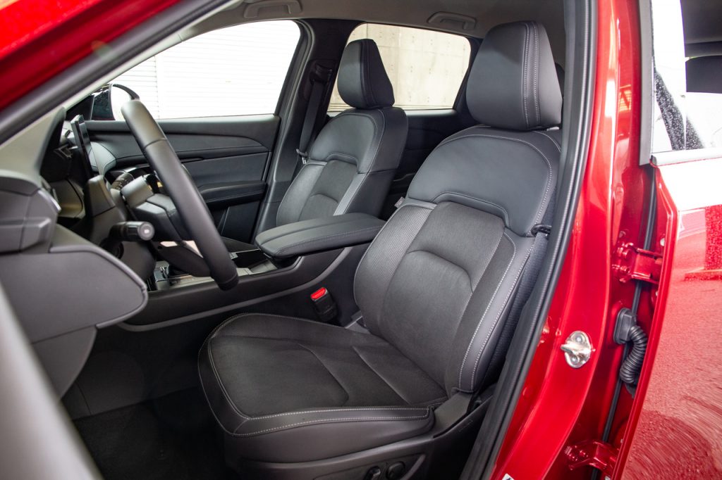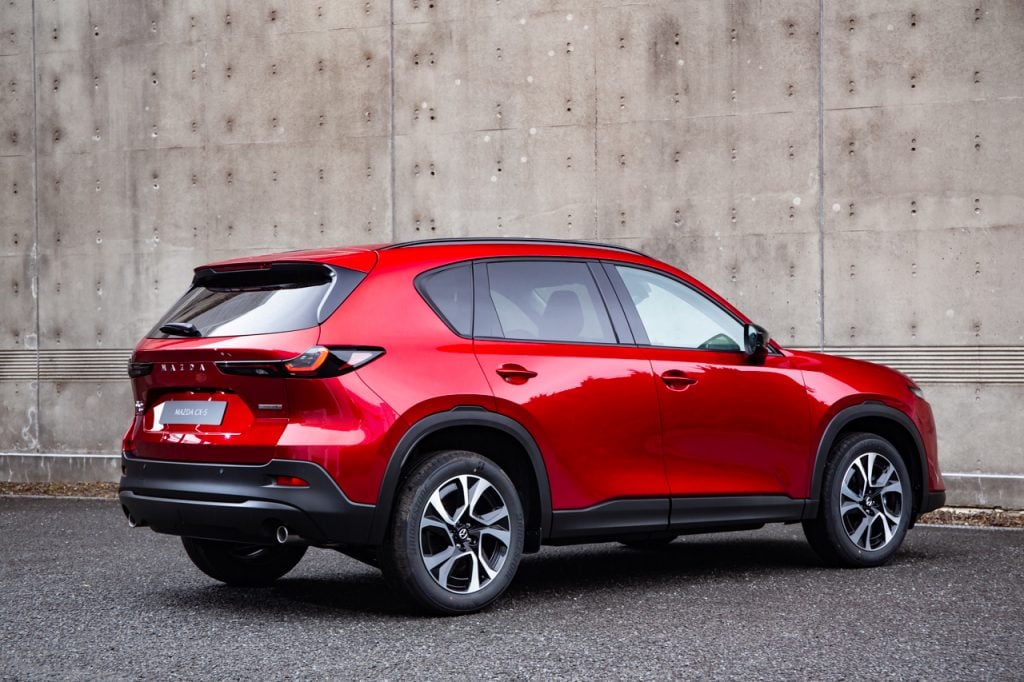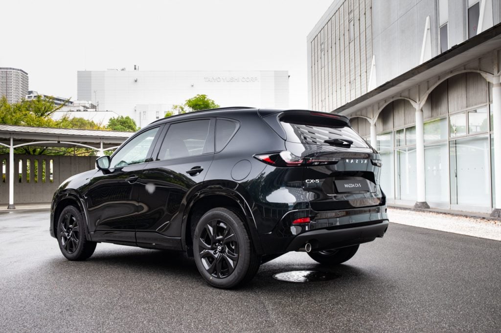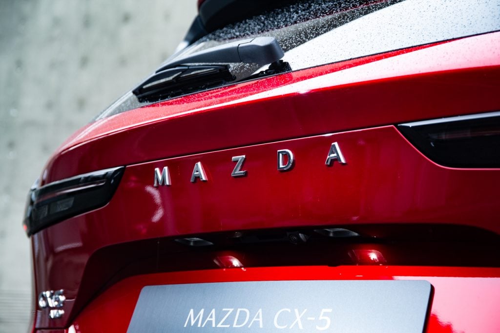 一方でデザイナーとしては、CX-5らしいスタイリッシュな雰囲気を実現するためにかなり苦労したそうです。それを解決したテクニックのひとつがフロントドアに入るプレスライン。シュッと斜めに切れ上がるこのラインの視覚効果はかなりのもの。実際、指で隠してみると印象が変わるはずです。リヤセクションのデザインも初代からのイメージを上手に引き継ぎながら、CX-80との近似性を持たせて車格感を引き上げています。