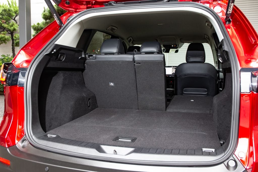 さらにラゲッジルームの進化は、これまでのCX-5オーナーにとっては羨ましいはず。奥行きが45mm拡大したことで床面積はクラストップレベル、容量は583L(+61L)になりました。後席を倒せば段差のないフラットな空間が出現しますし、荷物の出し入れに関係する開口部の下端は先代に比べて18mm低くなるなど、使い勝手のよさを大事にしていることがわかります。