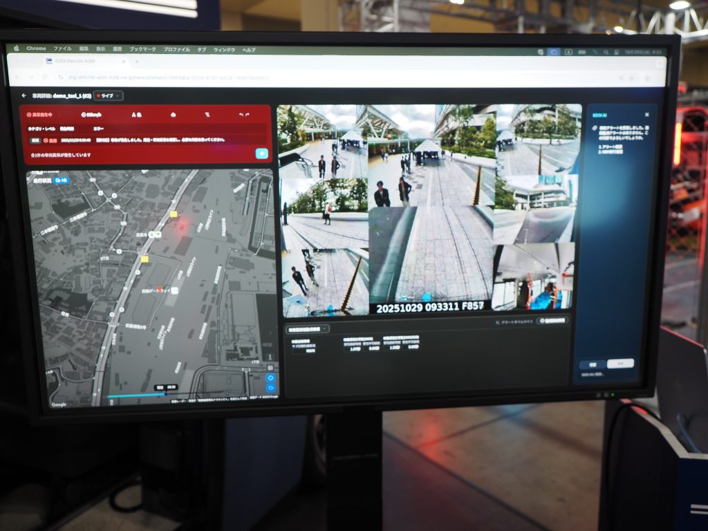 運転席は存在せず、基本的には遠隔でスタートや停止をコントロール。監視を行う画面では、位置情報や車載カメラのリアルタイムの映像が常に把握できるだけでなく、異常が発生するとアラートとともに対処法も画面に表示される仕組み。どうしても人が対応しなければならない時のみ、PCやコントローラーを接続して対応する。