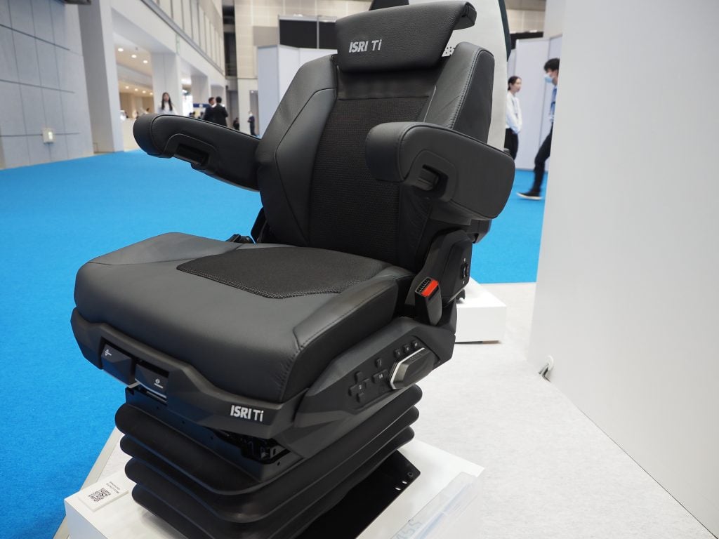 このほか、欧州のトラクターや建機に採用されているという最新のシートも紹介。ショックアブソーバーを備え、腰の部分はホールド機能を設定。広大な畑で長時間連続作業をすることも考慮して搭載したマッサージ機能は、運転に支障のない程度の押し加減で血流を促すもの。農業従事者などの高齢化に対応した、現代らしいシートだ。
