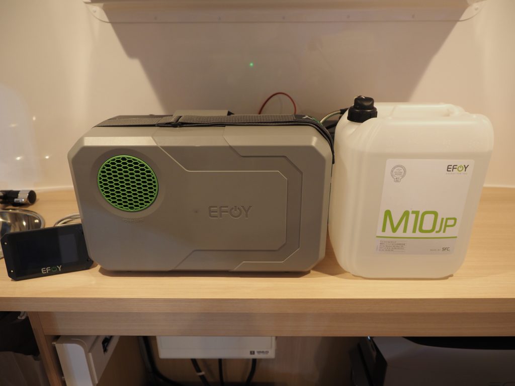 スターリンクのアンテナを設置し、太陽光発電と蓄電池に加え、メタノールを利用した発電機も使って、電力を確保。市販の駆動装置を使って、自立移動もできる。