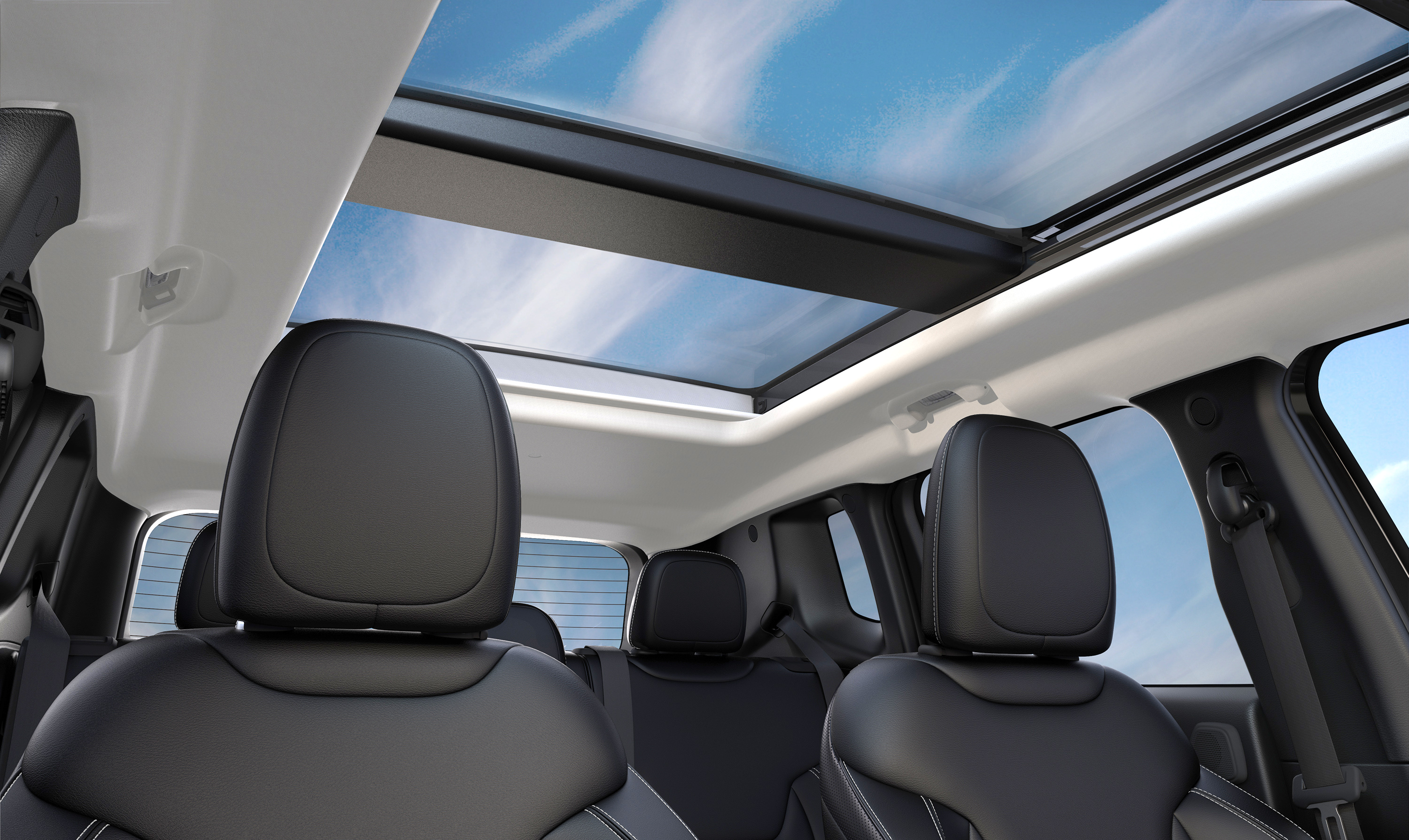 2枚の大型パネルで構成されるデュアルペインパノラミックサンルーフ(リミテッド・メーカーオプション)