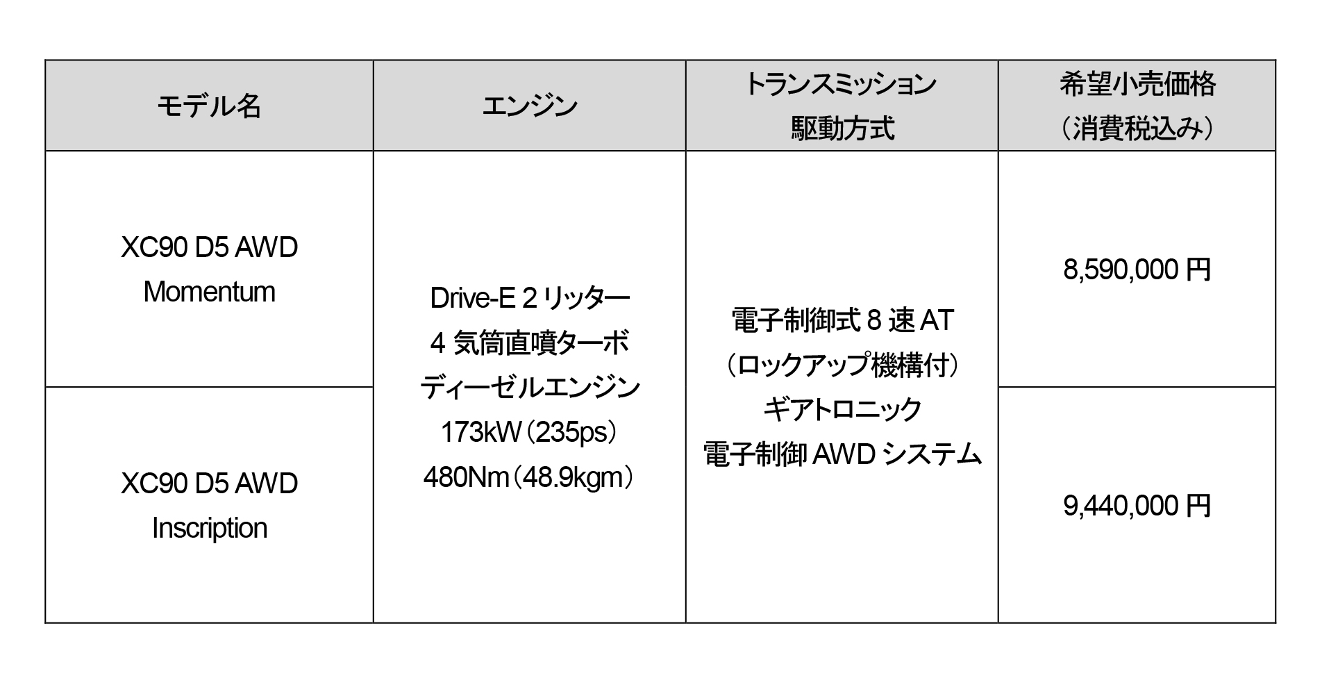 ボルボ、XC90に初のクリーンディーゼルモデル「D5」を追加導入