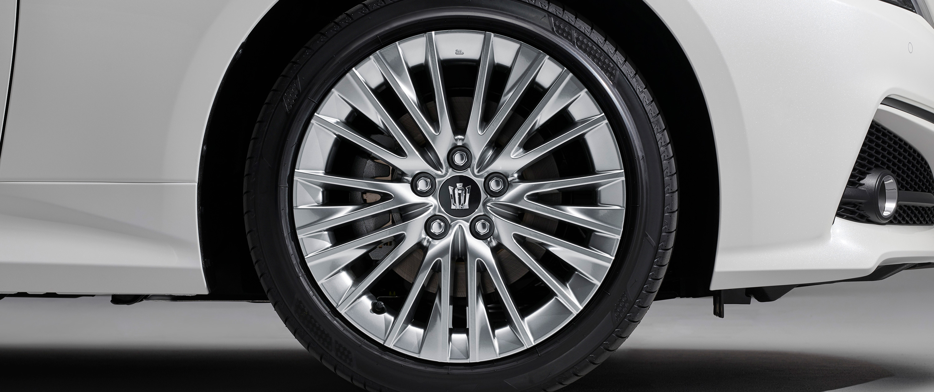 トヨタ自動車は7月8日、プレミアムセダン「クラウン」に、内外装を上質に仕上げた特別仕様車「エレガンス スタイル」を設定し発売した。この特別仕様車は、2.0Lターボガソリン車の「S」、2.5Lハイブリッド車の「S」「S Four」グレードをベースに、エクステリアにはハイパークロームメタリックカラーの18インチノイズリダクションアルミホイール&センターオーナメント、メッキ加飾のアウトサイドドアハンドル、インテリアにはブラックとメーカーパッケージオプションの「ジャパンカラーセレクションパッケージ」で選択できるこがね(キャメル)から選べる2色のインテリアカラーを設定し、スエード調のブランノーブと合成皮革を組み合わせたシート、ドアトリム、インパネ、センターコンソールのサイドに手触りのいいスエード調のグランリュクスを施したほか、センターコンソールパネルには美しい木目が特徴的な黒木目(欅調)を新たに採用した。さらに、ブラインドスポットモニター(BSM)/後方車両への接近警報、リヤクロストラフィックオートブレーキ[パーキングサポートブレーキ(後方接近車両)]/リヤクロストラフィックアラート、スマートエントリー&スタートシステム(全ドア/スマートキー×2)など、安全&快適装備をセットにした「C パッケージ」相当を特別装備した。