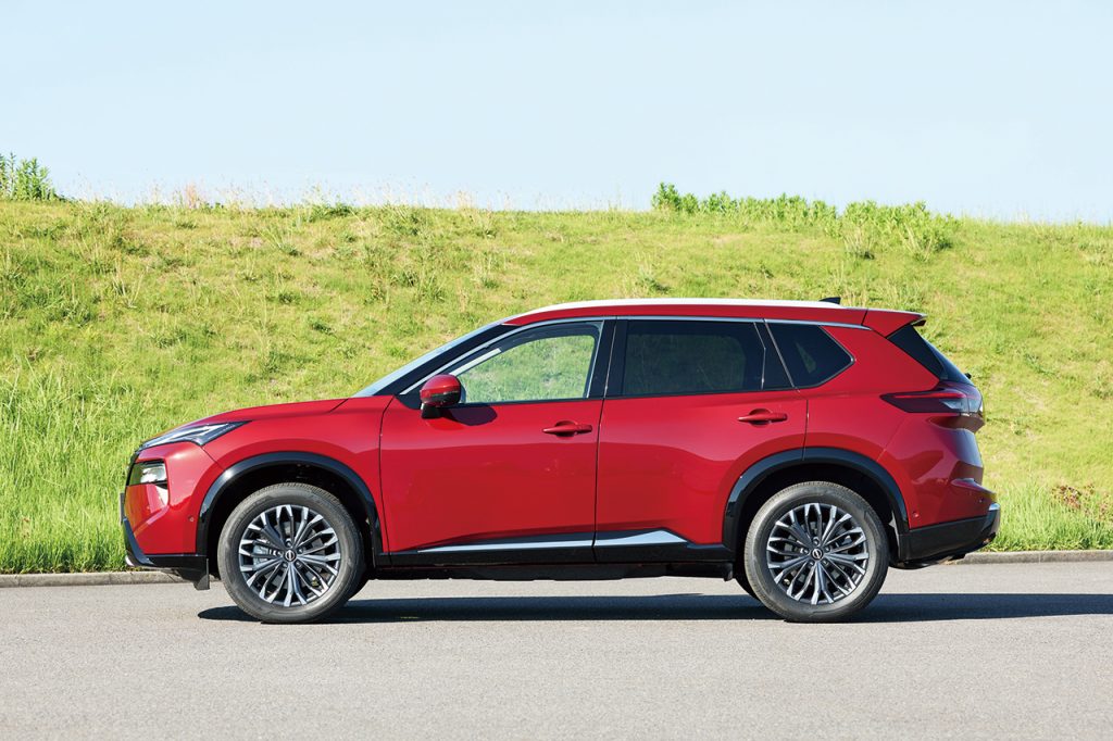 SUVのタフネスとPHEVの先進プレミアム感を演出した外観はミドルSUVでも独特な存在感を示す。3列シートを設定することもあって車体サイズは比較車の中では最も大きく、ホイールベースこそエクストレイルと共通だが、全長は4.7mを超えている。さらに押し出しの強いフロントマスクもあって、見た目のサイズ感もクラス上の印象を受ける。