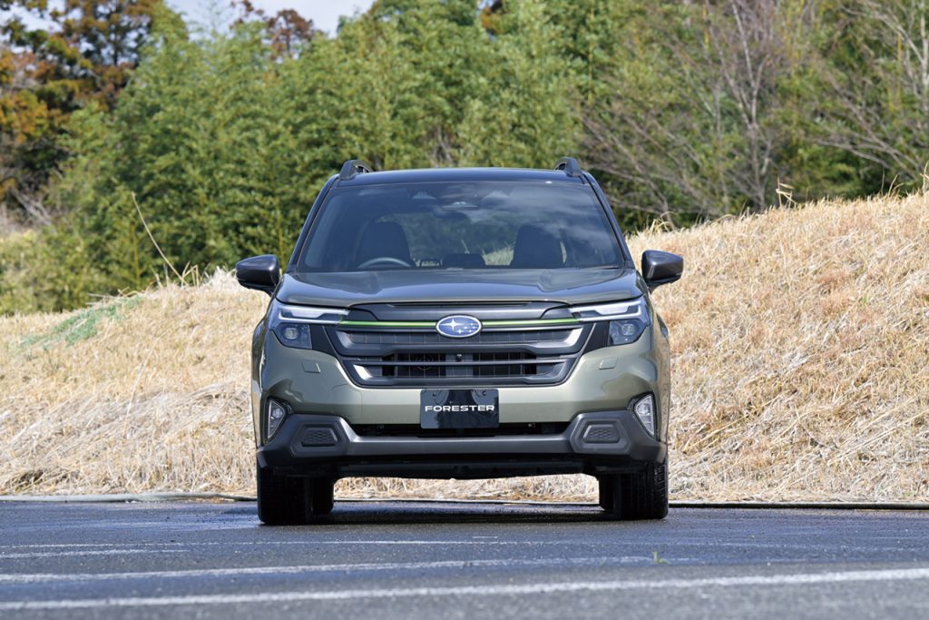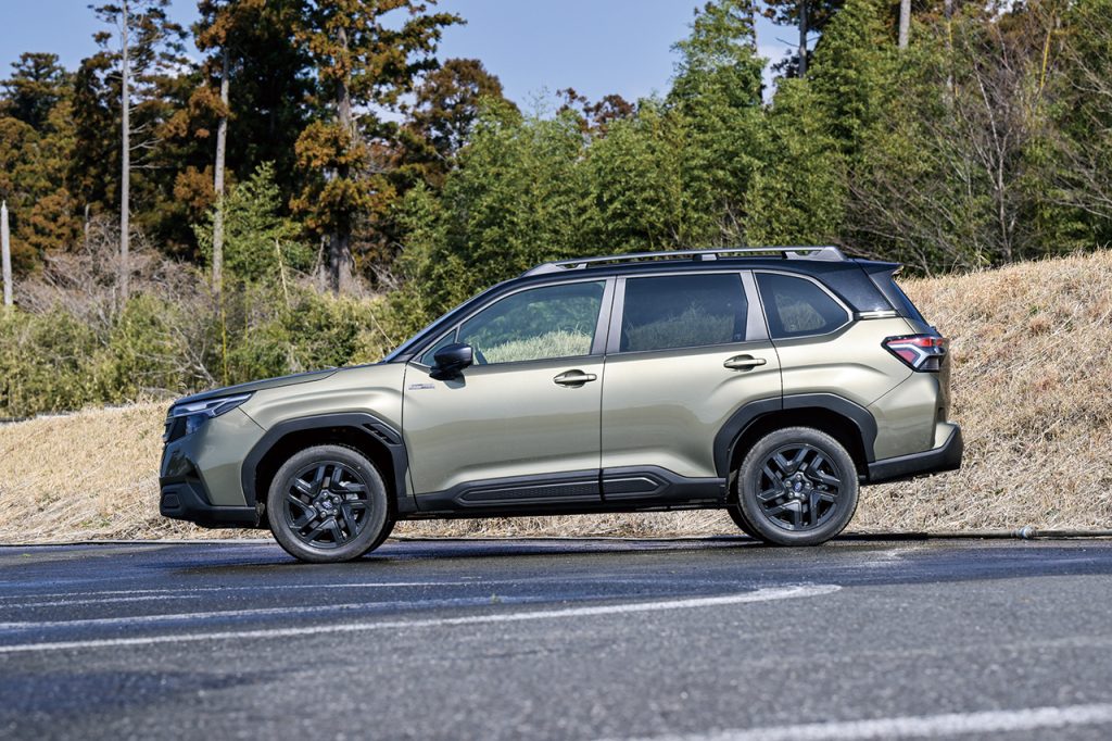 水平対向4気筒・縦置レイアウトを採用するため、フロントオーバーハングが多少長めだが、上下幅の大きなクオーターウィンドウや後半の絞り込みを抑えたルーフラインなど実用性を考えたスタイルだ。フロントマスクはこれまでのスバル車とは趣が異なり、SUVのトレンドを取り込みながらスバルSUVの新世代を予感させるデザインとなった。