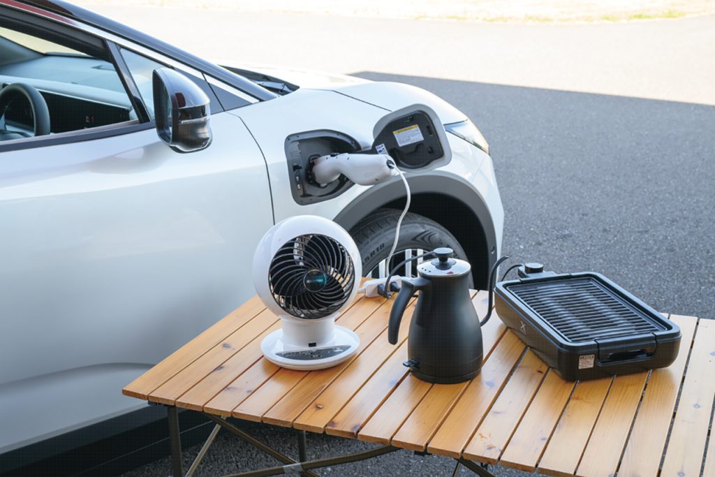 ■外部給電 充電ポートに接続する「AC外部給電コネクター」を使えば、ドアロック時も1500W電源が使える。