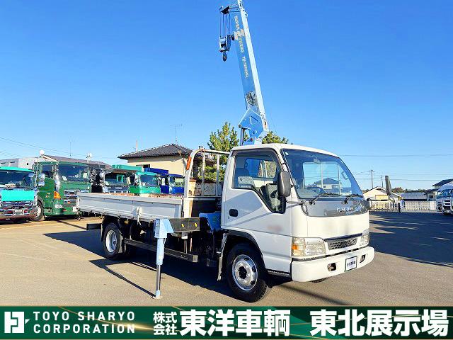 エルフトラック クレーン付平ボディ 上物タダノ製 4段ブーム ラジコン(無線) 2.6t吊り フックイン 荷台寸法371×180×38 標準ロングボディ 荷台床鉄板/板張り 積載2t アオリ5方開