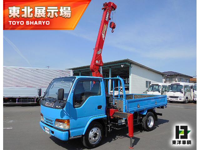エルフトラック タダノクレーン 4段ブーム 2.6t吊り ラジコン付(無線) 荷台床鉄板張り ロープ穴有 標準ロング 積載2t