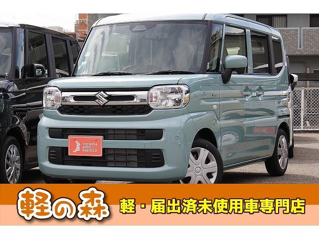 スペーシア ハイブリッドX 軽自動車 届出済未使用車 衝突被害軽減ブレーキ アイドリングストップ スマートキー ベンチシート フルフラットシート エアコン エアバッグ パワステ パワーウィンドウ