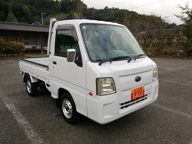 サンバートラック 4WD 5速ミッション パワステ エアコン 三方開 走行122200km タイミングベルト交換済み 車検2年付き 内外装クリーニング済み