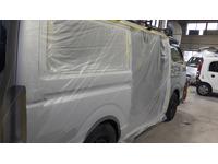 200系ハイエース板金塗装です。一般的な作業は内容は、付属部品を外し隣接パネルが近い場合は、色が100%合わないので隣接パネルまで塗装するのがセオリーです。 続きを見る