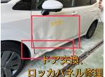 キズ・へこみ直し 日産 ノート 左フロントドア交換、ロッカパネル修理キズ・へこみ直し