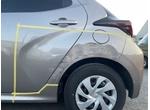 キズ・へこみ直し トヨタ アクア 電柱接触へこみ大 リヤドア・クォーター(Rタイヤ上)キズ・へこみ直し…