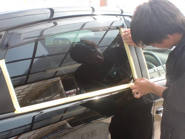 まずは窓枠のゴム部分にマスキングテープを貼ります!!
