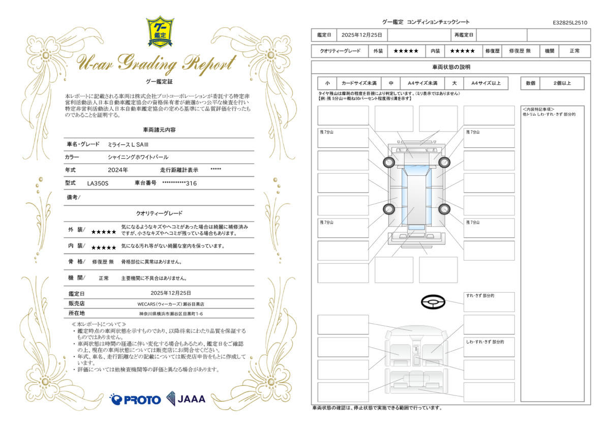 [保証付]:1ヶ月・1000km ※いずれか早い時期が保証適用の条件となります。 納車後1ヶ月・1000km以内は36機構・343項目を保証いたします。詳しくは販売店までお問い合わせ下さい。 |
