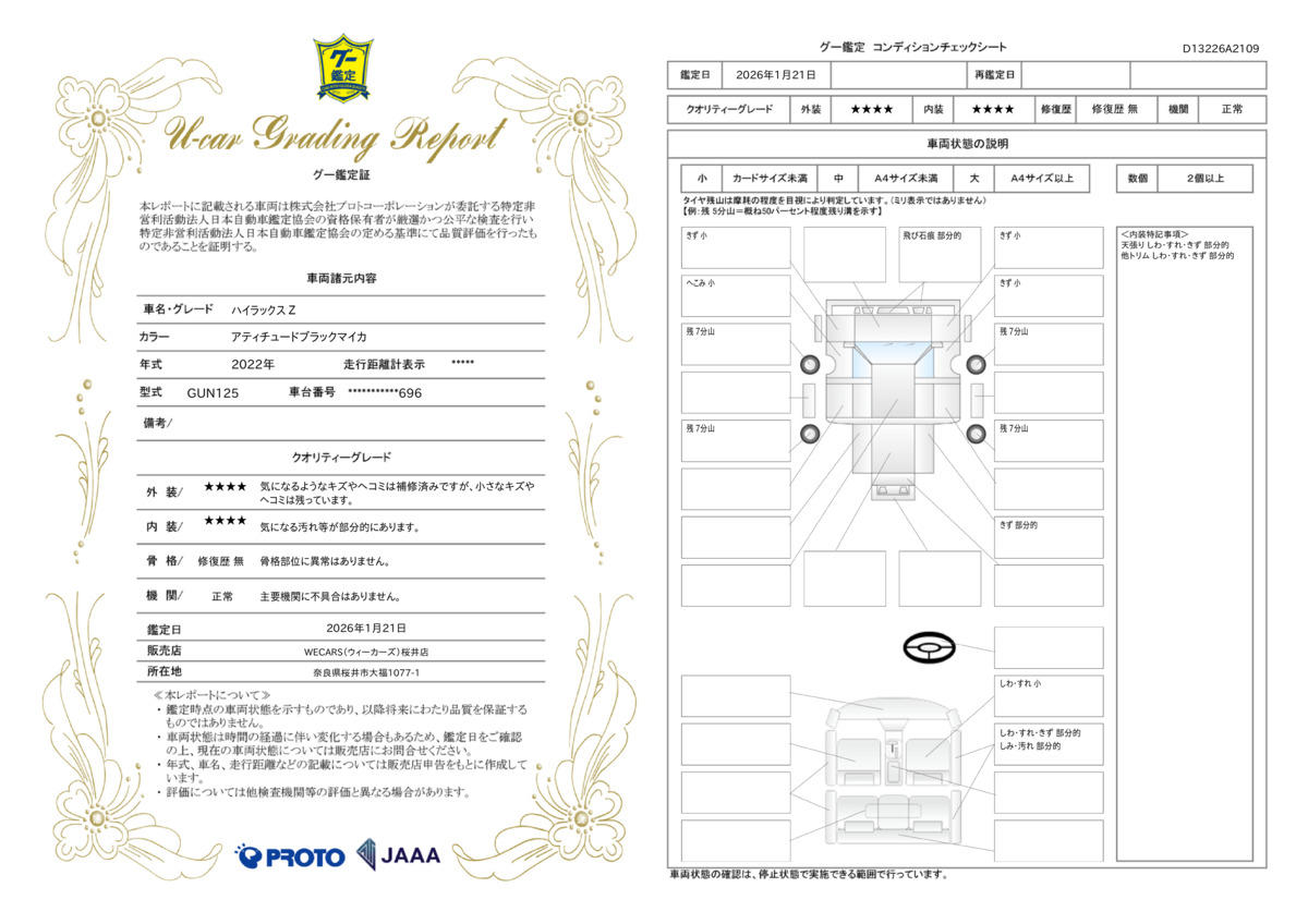 | 保証項目 | 納車後1ヶ月・1000km以内は36機構・343項目を保証いたします。詳しくは販売店までお問い合わせ下さい。 |