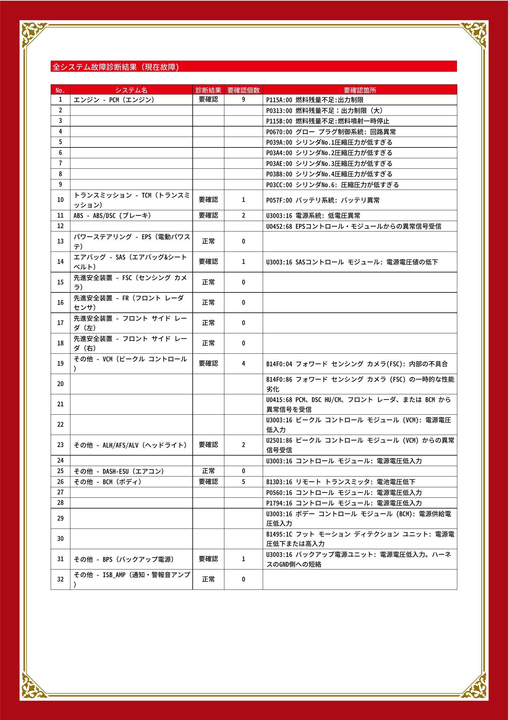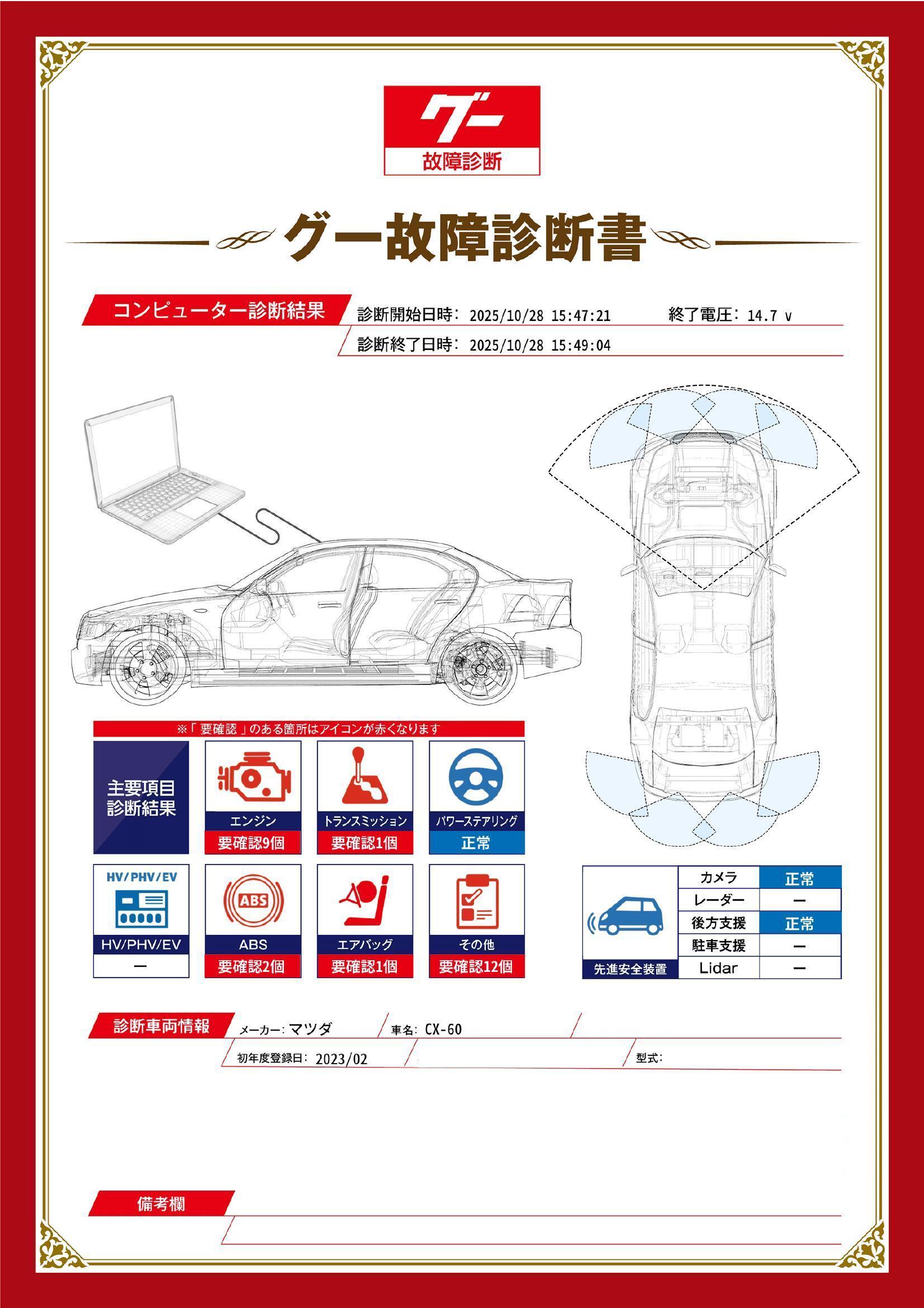 | 保証項目 | 3ヶ月・3000km以内ならエンジン、トランスミッション、ハイブリッド、ステアリング、ブレーキの各機構における主要項目を無償修理(または交換)いたします。 |