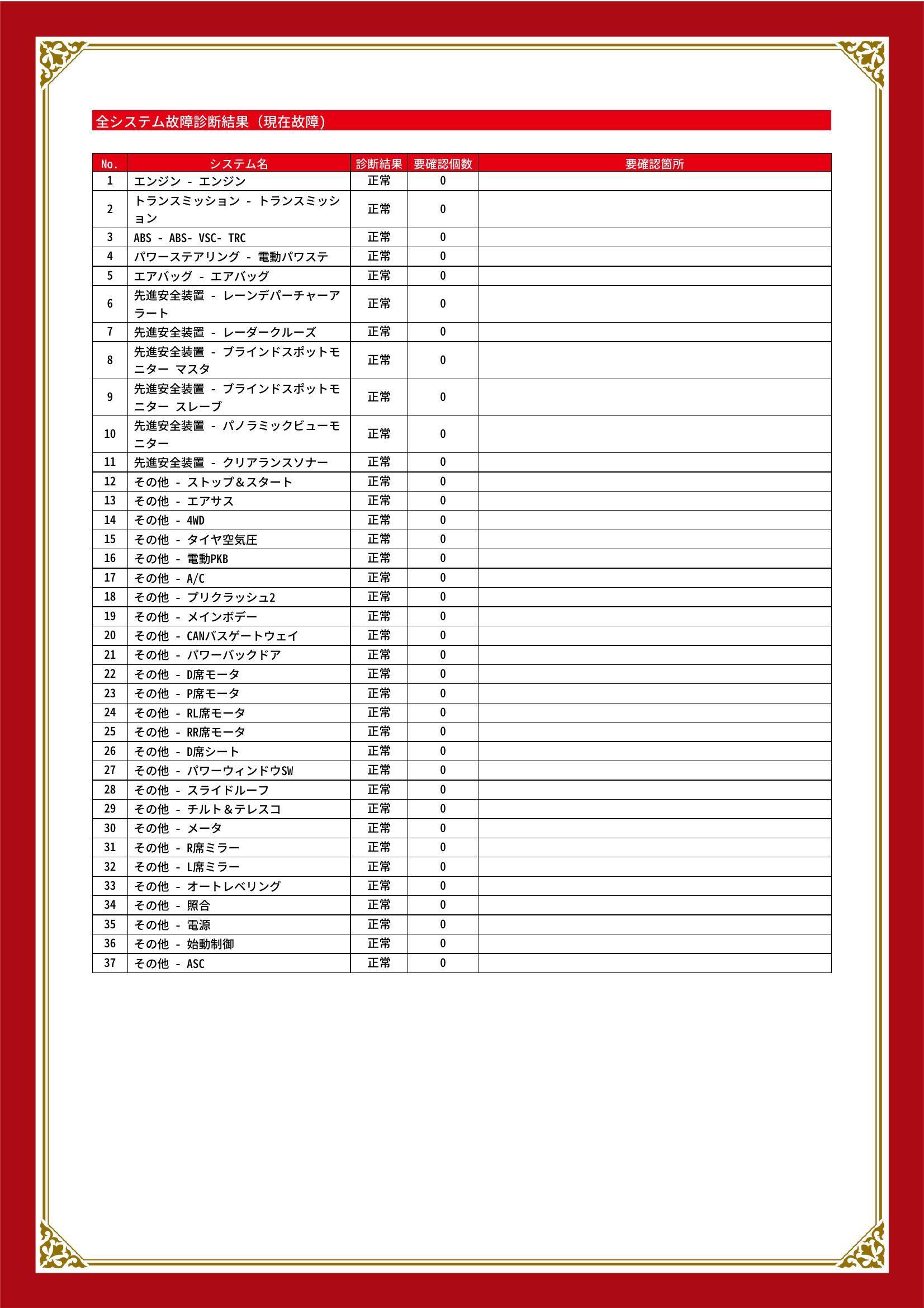 | 保証項目 | 3ヶ月・3000km以内ならエンジン、トランスミッション、ハイブリッド、ステアリング、ブレーキの各機構における主要項目を無償修理(または交換)いたします。 |